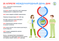Международный День ДНК, который отмечается ежегодно 25 апреля, был впервые установлен в США в 2003 году. Его провозгласили обе палаты Конгресса — Сенат и Палата представителей. Организацией мероприятий, связанных с этим праздником, занимается Национальный институт исследования генома человека, который находится в Бетесде, штат Мэриленд. Дата празднования может варьироваться, но всегда приходится на апрель. Например, в 2010 году его отмечали 23 апреля, в 2011 году — 15 апреля, а в 2012 году — 20 апреля. В некоторых странах мира 25 апреля отмечают как Всемирный или Международный день ДНК.