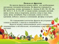 Овощи и фрукты также отличаются низкой калорийностью, что делает их важным компонентом диет и лечебного питания для людей, страдающих избыточным весом.