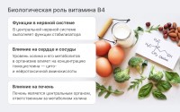 Холин защищает клеточные мембраны от повреждений, обладает успокаивающим эффектом и нормализует уровень холестерина. Он улучшает обмен веществ в нервной ткани, предотвращает образование желчных камней и нормализует жировой обмен. Употребление холина способствует улучшению кратковременной памяти и снижению артериального давления.